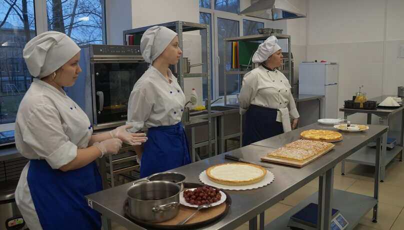 Александра и Надежда подготовили для нас более десяти различных рецептов прикамских пирогов! Из песочного теста можно приготовить песочно-цитрусовый пирог, ягодная фантазия, песочно-творожный пирог. В основе пирога с брусникой – дрожжевое тесто. Из слоёного теста можно приготовить очень вкусный пирог с творогом и яблоками. Побеседовав с будущими поварами, мы узнали интересные истории об их учёбе, маленькие секреты о том, как приготовить вкусное тесто, что для этого надо сделать. Студенты поделились с нами «лайфхаками» для идеальной выпечки. Оказывается, если под форму на отдельный противень насыпать соли, пирог никогда не пригорит! А если верх пирога начинает пригорать, его можно прикрыть промасленным пергаментом. Легче всего вынуть пирог из формы, если сразу же после выпечки поставить её на мокрое полотенце. Напоследок девушки подсказали нам, как нашей команде выигрышнее подать приготовленный пирог на кулинарном шоу, которое пройдёт в марте следующего года.
