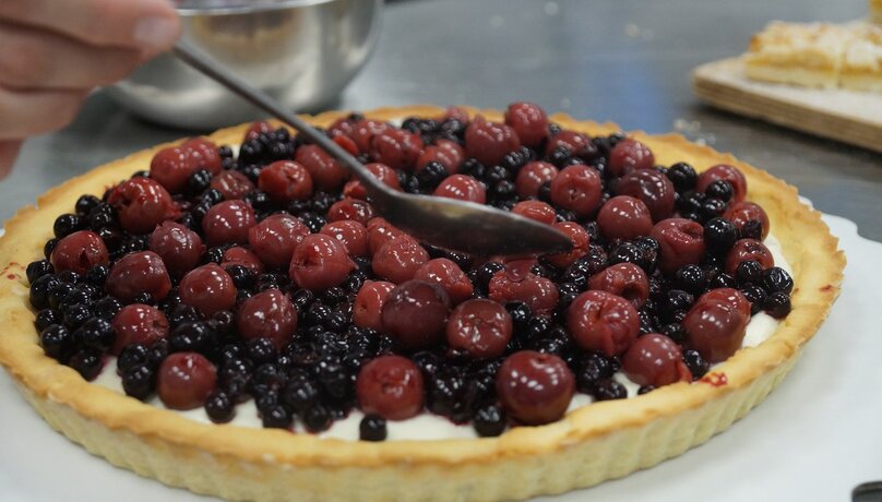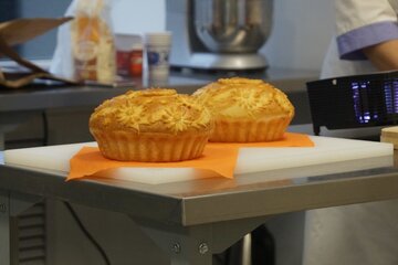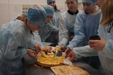 Сколько кулинарных секретов мы узнали на мастер-классе по приготовлению прикамских пирогов! Оказывается, песочное тесто готовится на сливочном масле и перед использованием его нужно обязательно охладить. А ванилин позволяет добиться насыщенного вкуса! Полученные знания мы тут же применили на практике. Приготовили вместе с поваром и продегустировали три пирога с разными начинками: пластовой пирог с цитрусовой прослойкой, творожный пирог с украшениями в виде ёлочек из песочного теста (идеальный вариант на Новый год) и ягодно-творожный пирог. В состав последнего входит не только творог, но также желатин и ягоды. Такой вкусный и красивый пирог украсит любой праздничный стол.