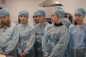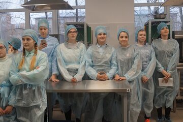Лейла Гулиева: Мы пришли в лабораторию и увидели много техники. На кухне очень вкусно пахло. Повара рассказали нам о древних кашах, а затем предложили моему однокласснику Андрею приготовить одну из каш. Как только он закончил, нашу кашу отправили в печь. Потом мы, конечно, начали её пробовать. Я вкуснее каши не ела! Затем мы пробовали кашу с разными добавками, например, с бананами и соусом.