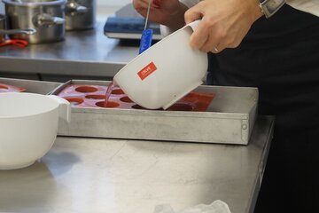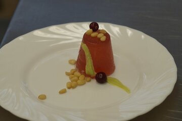 Мы готовили ягодное желе с мёдом. Нас удивили сочетания продуктов, на которые мы бы сами не решились. Украшали миниатюрный кулинарный шедевр кедровыми орешками, ягодами клюквы и окрашенным в зелёный цвет белым шоколадом. Это кропотливая, но очень интересная работа. Дома обязательно попробуем приготовить десерт вместе с родителями по рецепту. Его мы предусмотрительно попросили у повара ПТТК.