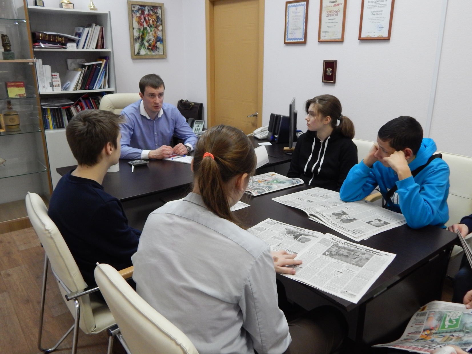 В пермский филиал «Российской газеты» приехали ребята из закамской школы-интерната №113. Встретил нас Константин Бахарев – солидный мужчина с занятным профессиональным прошлым. Много лет он работал в милиции, был начальником Рыбнадзора, а последние 10 лет Константин – корреспондент «Российской газеты».