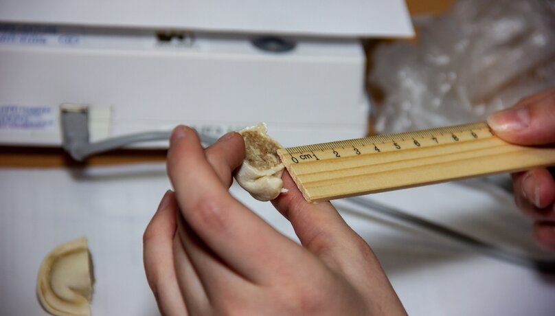 После замеров и взвешивания команды обработали полученные результаты по предложенной формуле. Количество фарша в полуфабрикатах, которые подвергла экспертной оценке наша команда, составило 48,6%, что меньше нормы. Замеры можно сделать обычной линейкой, и нам пришла такая мысль: а не провести ли и дома проверочку? Мои одноклассники из «СинТеза» поддержали меня.