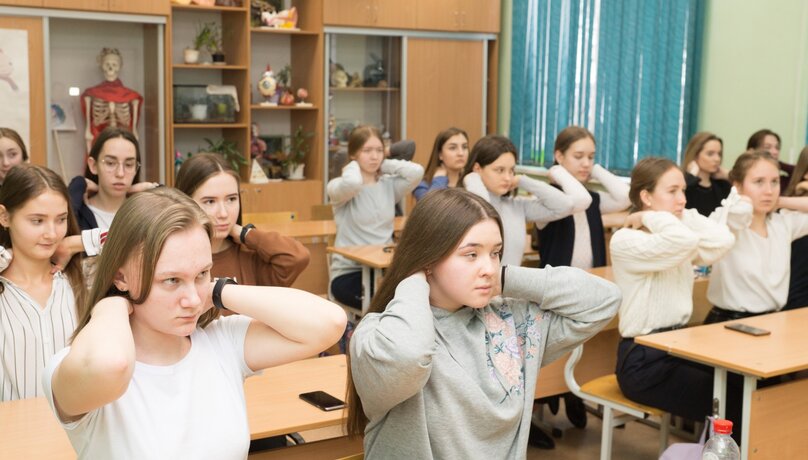 Нам было приятно, что Евгения, специалист по лицевой гимнастике и спейслифтингу, имеет медицинское образование. Так как мы являемся классом с медицинским уклоном, нам было очень легко найти с ней общий язык, Также нас порадовало то, что благодаря простым упражнениям можно предупредить возрастные и генетические изменения лица и даже снять головную боль без применения медикаментов.