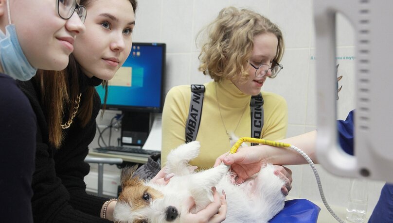 Затем мы перешли в кабинет УЗИ. Приятно удивило, что нам показали всё на практике: привели маленькую собачку, и на экране мы увидели её внутренние органы.