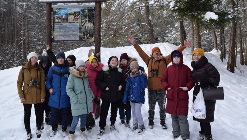 Например, буроголовая гаичка запасает семена ели, сосны, можжевельника. В зимний период дятлы переходят на семена из еловых и сосновых шишек, жёлуди, орехи, семена лиственных деревьев, сосновые почки. Не прочь они подкрепиться и едой в кормушках, установленных человеком. Отличной подкормкой в суровый зимний период для птиц служат зёрна злаковых культур, дроблённый ячмень, орехи, нежареные семена подсолнечника, кусочек натурального сала. Во время экскурсии школьники также вместе с орнитологом установили на тропе 5 кормушек.