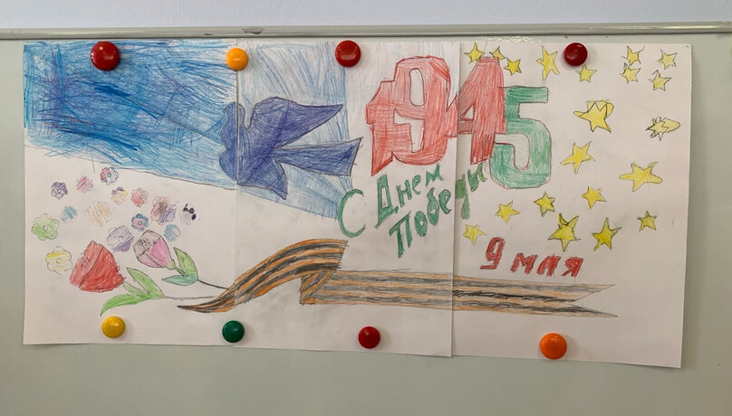 В рамках проекта «Юнкорики победы» прошли последние занятия по изобразительному искусству. Первоклассникам школы № 37 и подготовительной группе детского садика «Совушка» предстояла командная работа по созданию макета поздравительной открытки, посвящённой победе в Великой Отечественной войне. И, забегая вперед, мы можем с уверенностью сказать, что ребята справились на 5+.