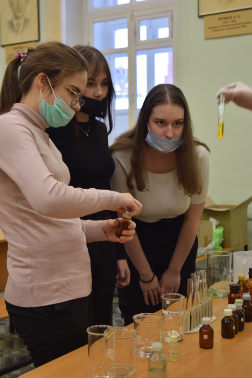 Здесь будущим абитуриентам показали, как происходит измерение нитратов в продуктах регулярного потребления с помощью специального прибора.