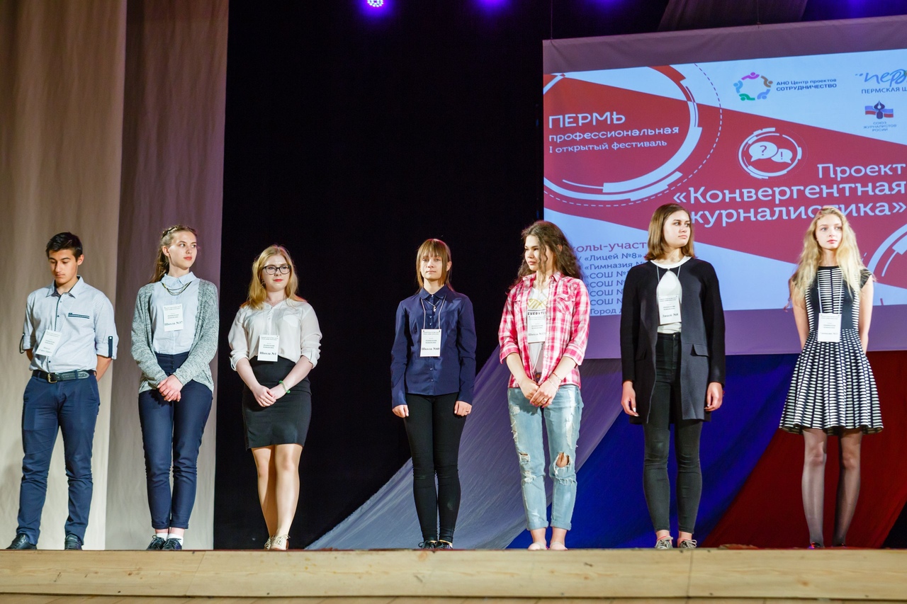 Под громкие аплодисменты зала на сцену поднимаются по одному представители школ-участниц: школ №№1, 37, 60, 131, «Город дорог», гимназии №31 и лицея №8. Награждали ребят Иван Печищев и корреспондент «Перемены-Пермь» Елена Никулина. Подарки были предоставлены партнёрами фестиваля: бизнес-школой «Открытие» и швейной фабрикой «Баловень».