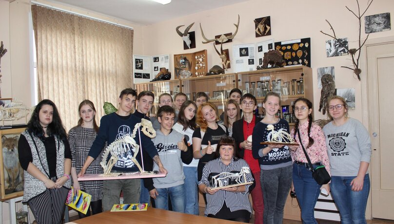 А дальше юные участники экспедиции попали в необычный мир животных – анатомический и зоологический музеи. Здесь собраны разные экспонаты. Есть и весьма редкие. Например, чучело головы тигра или скелет бизона. Некоторые экспонаты делают сами студенты. Коля Новожилов обрадовался, когда увидел скелет хорька. Даниил Сорокин тоже оценил богатство музейных экспонатов: «Изучение скелетов позволит лучше знать животных, их тип движения, состояние суставов».