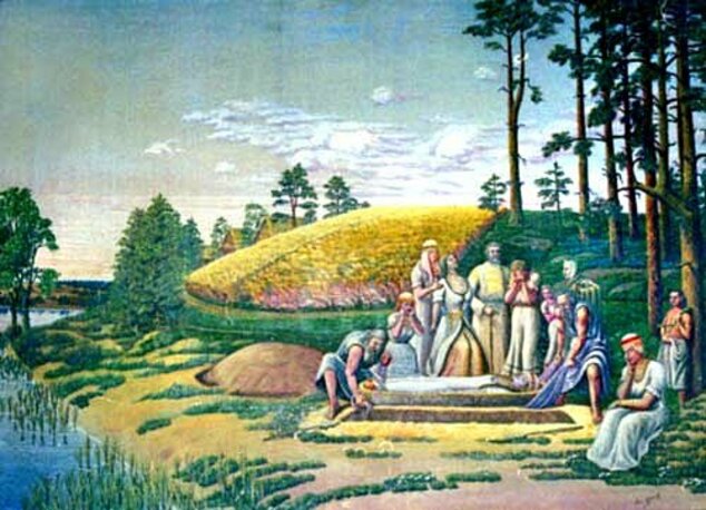 Считается, что причиной, толкнувшей их на этот поступок, могли оказаться как русские, уже начавшие претендовать на эти земли, так и голодные годы, преследовавшие чудь. Но истинную причину коллективного самоубийства доподлинно никто не знает. Самопогребение они осуществили предположительно, вырыв глубокую яму и построив над ней настил, на который они насыпали землю. После чего все вместе сошли в яму и подрубили столбы, приняв мученическую смерть.