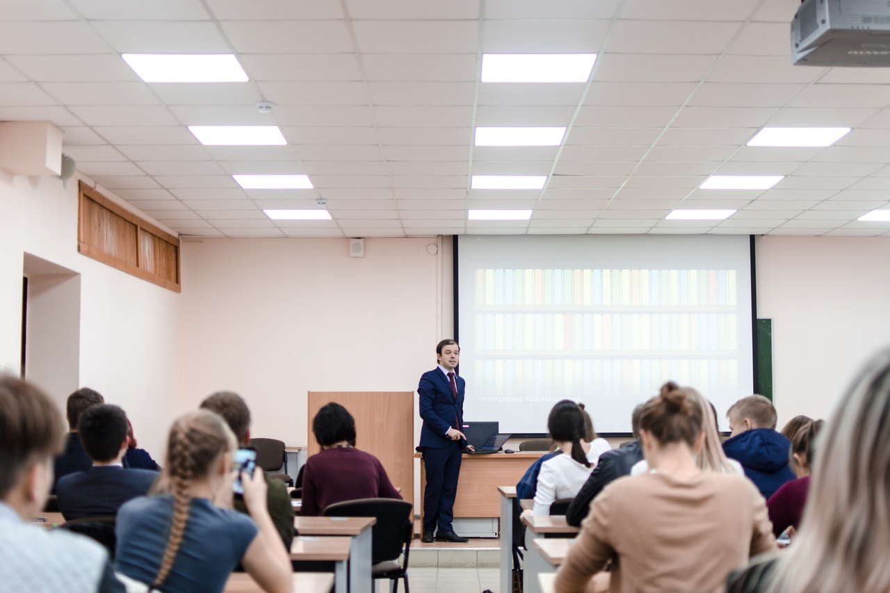 Сразу после открытия состоялась первая вводная лекция на тему «Инфографика – новый язык медиа». Преподаватель, доцент кафедры журналистики Иван Михайлович Печищев рассказал участникам проекта о том, что представляет собой инфографика и почему сегодня она так активно используется в медиа.