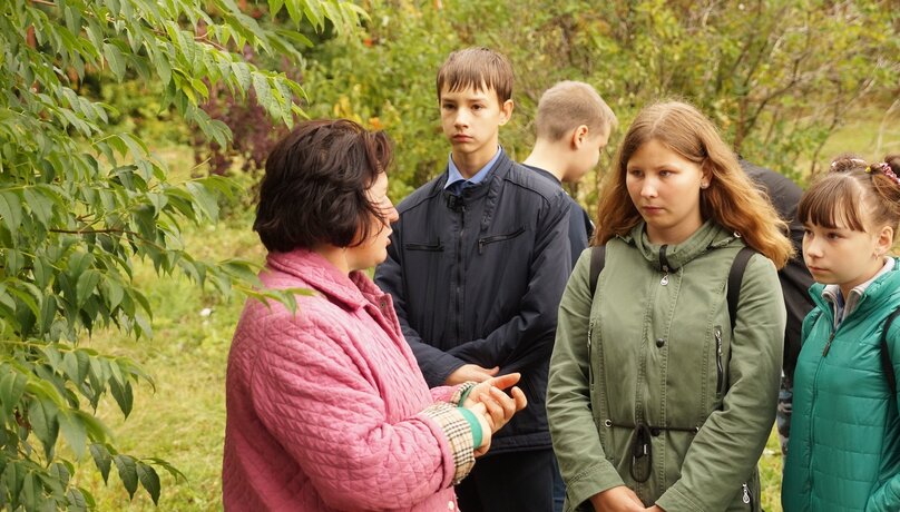 В день экскурсии шёл дождь, было немного пасмурно. Но нам это совершенно не помешало, ведь осенью в палисаднике всё расписано яркими и сочными красками. Мы познакомились с такими интересными растениями, как актинидия коломикта, пекан, чёрный тополь, калина, девичий виноград, барбарис… Специалисты предприятия «Агрофирма Усадьба» объяснили нам, что такое ландшафтный дизайн и поведали о работе агрономов. Это только начало! Вскоре нам предстоит разрабатывать собственный проект, а знания, которые мы сегодня получили, обязательно нам для этого пригодятся.