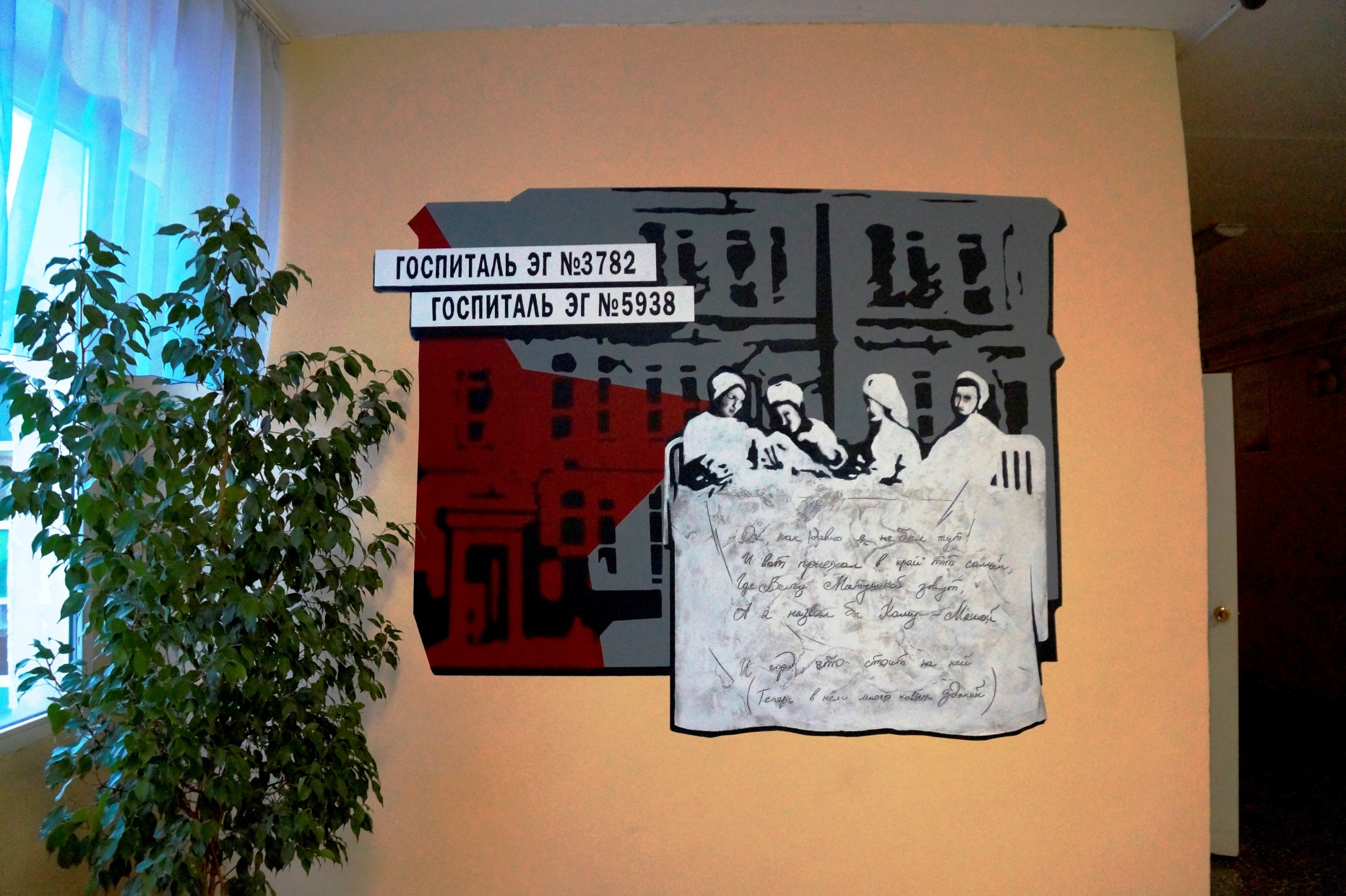 – На панно мы решили изобразить солдата в пилотке, санитарную сумку и повязку с красным крестом. За основу взяли реальные письма, которые сохранились в архиве нашей школы. Это письма солдат, работников эвакогоспиталя, детей и учителей. В ноябре мы активно работали с архивом, а в декабре уже наносили на стену рисунок. В разработке концепции рисунка нам очень помогли дизайнеры. Ребята выразили свои пожелания, что они хотели бы видеть на стене, а дизайнеры помогли воплотить их идеи в жизнь.
