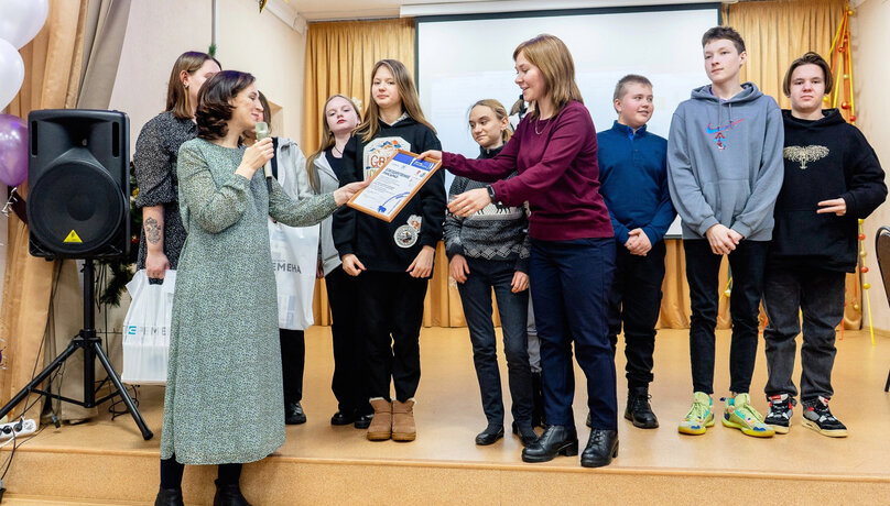 Несомненно, такая игра неплохо закрепила полученные знания и умения участников проекта. А значит – самое время наградить ребят за весь пройденный путь. Команды вместе с кураторами по очереди выходили на сцену и получали приятные подарки и благодарности. Наталья Александровна отметила, что победителей проекта определит экспертное жюри на конференции, поэтому сегодня все, так или иначе, являются победителями!