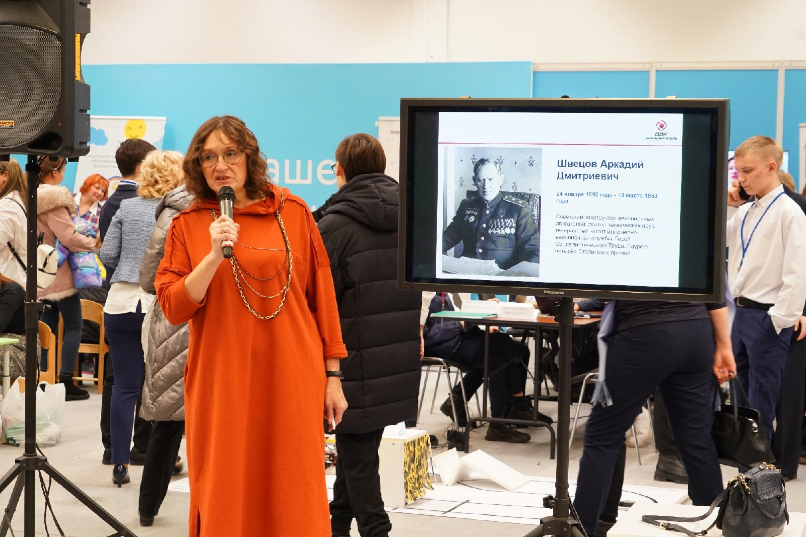 После напутственных слов от организаторов проекта педагоги и ребята разделились на группы–школьники остались в зоне мастер-классов, а учителя физики отправились слушать лекцию в образовательный кластер на первом этаже, рядом со стендом «ОДК-Авиадвигатель».