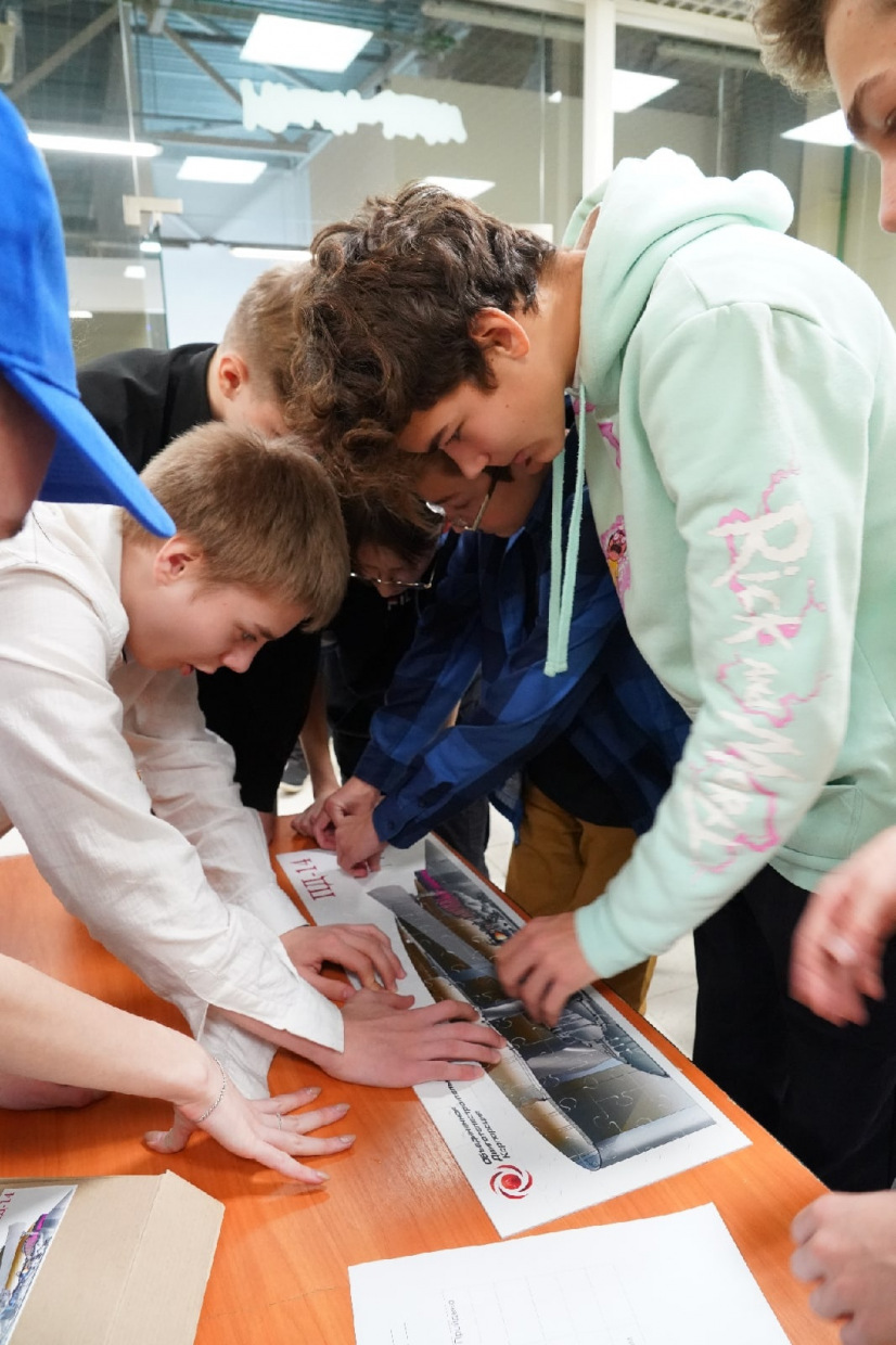 Первая станция – «Викторина». Ребята дружно решали кроссворд на тему авиадвигателестроения. Вторая станция – «Знакомство с Авиадвигателем». На этой станции детям рассказали о принципе работы авиадвигателя, а затем команды должны были придумать свой фантастический двигатель. Далее ребятам предстояло собрать паззл «Двигатель ПД-14 в разрезе». Четвёртая станция — «Важные люди в авиации». Студенты аэрокосмического факультета ПНИПУ рассказали школьникам о выдающемся конструкторе авиационных двигателей Павле Александровиче Соловьёве и о его ученике и преемнике – Александре Александровиче Иноземцеве. Пятая станция – «Первый запуск». Здесь команды мастерили самолётики из бумаги и запускали их на «аэродром» (в мишень). С каждым новым запуском «аэродром» всё больше отдалялся от ребят, что в свою очередь только раззадоривало участников игры.