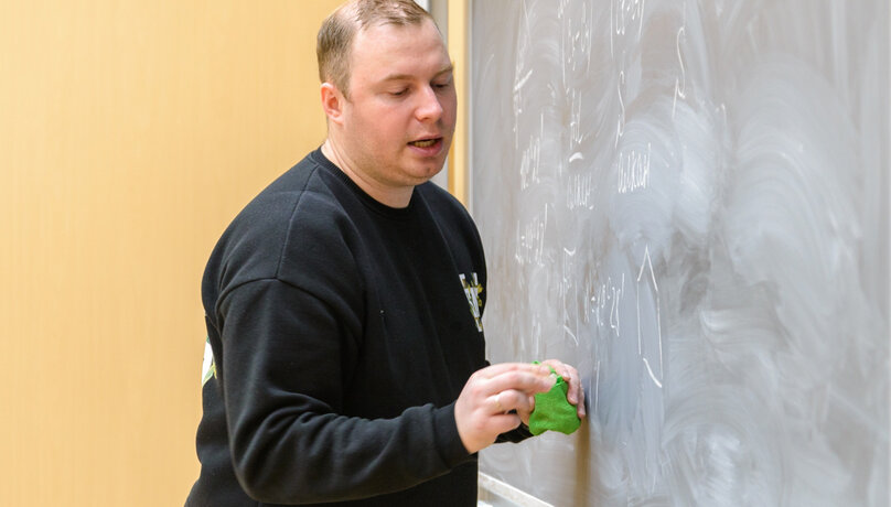 Потренировать свои силы в химии старшеклассники пришли 14 октября. В этот раз лектором выступил Вадим Александрович Лядов, старший преподаватель дисциплины «органическая химия» и «химия высокомолекулярных соединений». Т.к. нашими участниками стали и 10-, и 11-классники, то общую тему выбрать было довольно сложно. 11-классники проходят неорганическую химию, а 10-классники - алкины, алкены, типы и механизмы реакций.