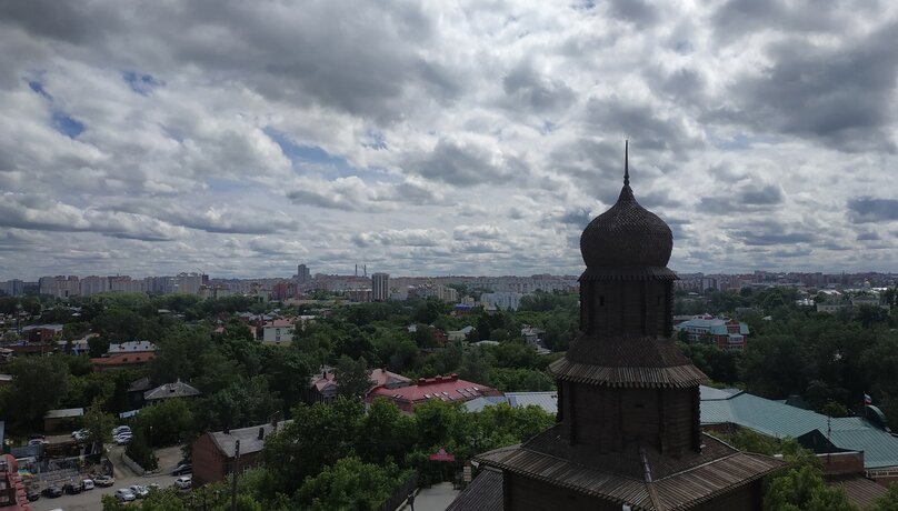 После этой экскурсии мы направились к Воскресенской горе и одной из главных смотровых площадок Томска – пожарной башне. Времени оставалось достаточно, поэтому группа журналистов на некоторое время осела в пиццерии.