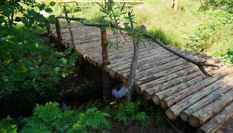 Помимо этого, на месте постоянного скопища мусора была поставлена крепкая большая урна. Достраиваются информационные стенды для новых объектов: с каждым сезоном их всё больше. Сейчас возводится сцена и своеобразный зал для посетителей, на следующий год будет построен мост через одно труднопроходимое место.