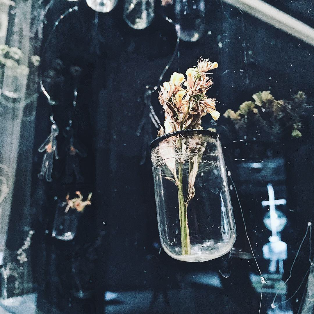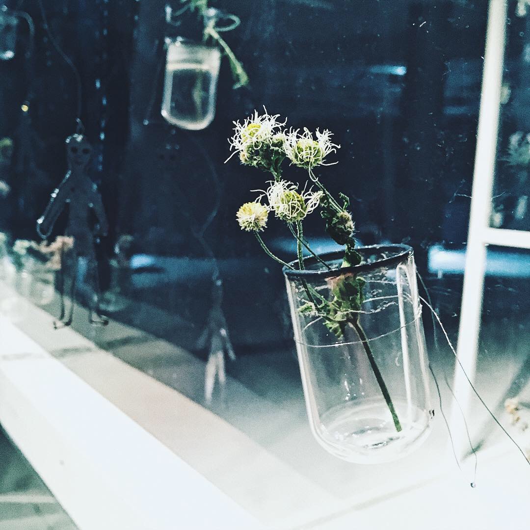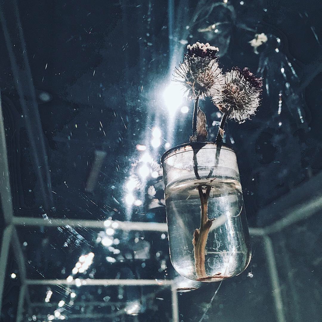 А в них цветы. Живые, питающиеся небольшим количеством влаги, сухим воздухом и эмоциями посетителей. Цветы в середине осени. Стеклянное, мёртвое, но цветущее поле жизни.