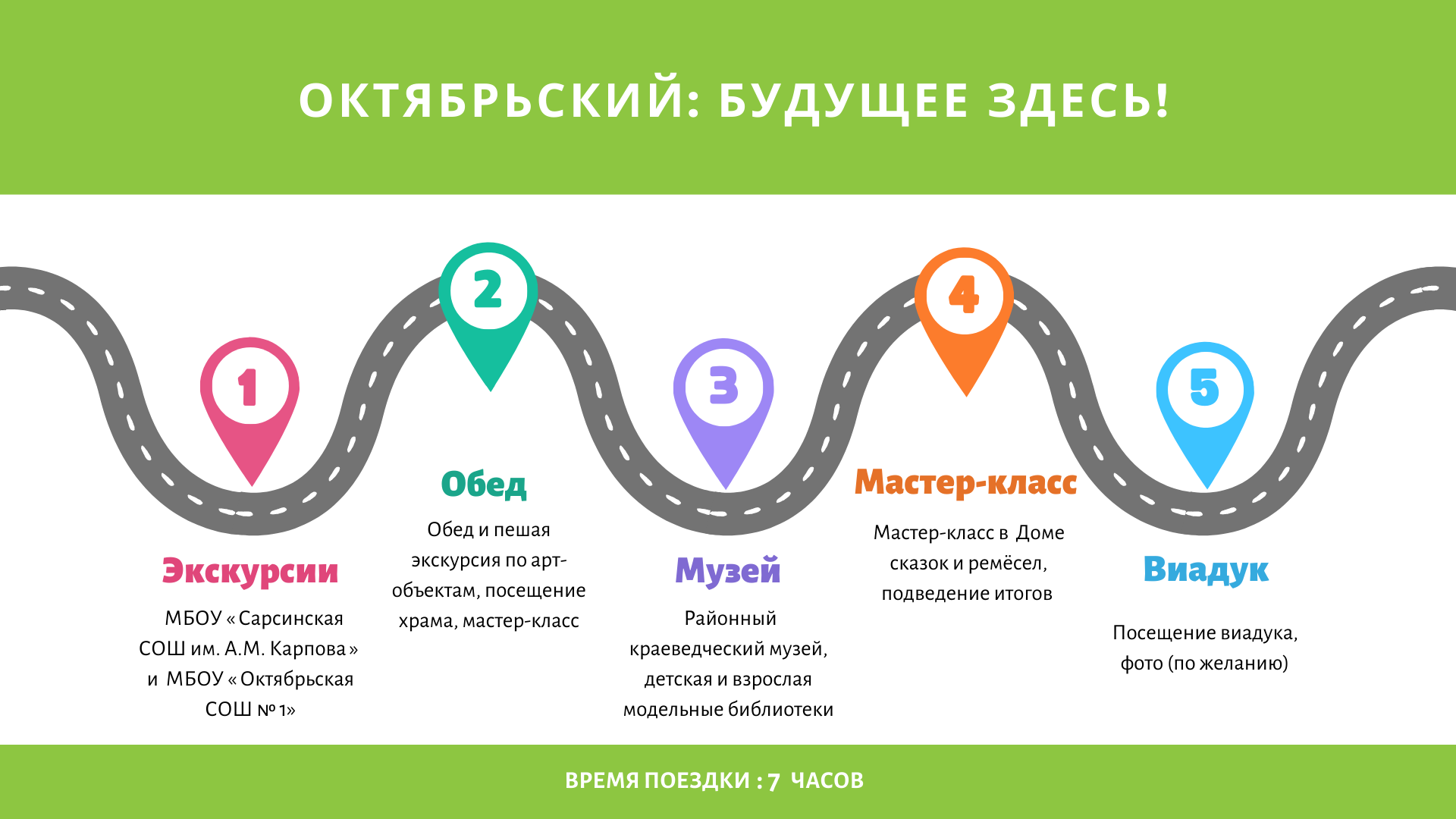 Ну, а запасшись временем, педагоги-туристы смогут побывать на виадуке и сделать в памятное фото в живописном месте округа. Виадуки – это грандиозные по размерам мосты, которые изначально строились как железнодорожные. Некоторые из них достигали в длину от 500 м до 2 км! В Октябрьском сохранилось несколько виадуков, гостям предлагается посетить ближайший – недалеко от д.Большой Сарс.