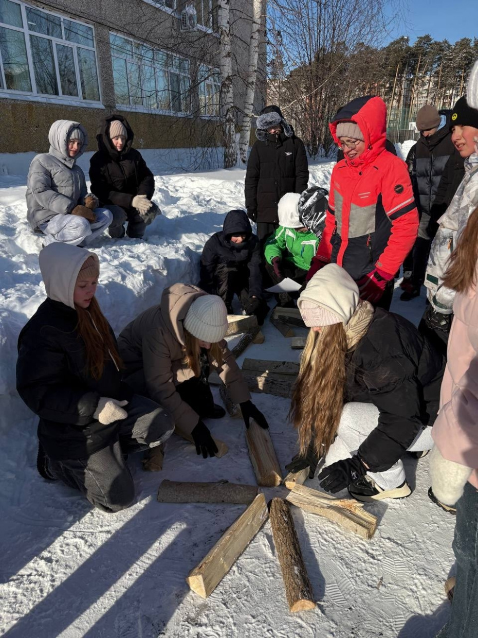 Поиск дощечек-«мин». Зимний вариант сапёрного задания потребовал от школьников внимательности и терпения. На заснеженном участке были спрятаны небольшие дощечки, имитирующие мины. Задача команды – найти и аккуратно обезвредить все «мины», не пропустив ни одной.