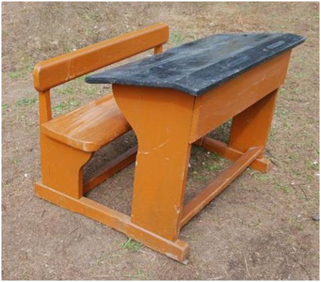 Готовилась к новому учебному году и школа - заканчивался ремонт, мылись окна, стены и полы. В некоторых классах были заново окрашены парты. В нашей школе они были коричневыми с чёрной рабочей поверхностью, не такими яркими, как на снимке внизу.