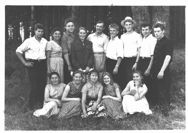 Стоят: Миша Иванов, Софья Иосифовна, Женя Челпанов, Оля Носкова, Алексей Дмитриевич, Боря Агеев, Володя Безукладников, Саша Вахрушев, Илья Путин