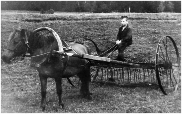 Почти все деревенские школьники, учащиеся средних классов, работали летом в колхозе. С 12-13 лет наши руки были не лишними на заготовке сена. Те, кто помладше и послабее, ходили вместе с женщинами-колхозницами ворошить и грести сено. Там, где трава была густой и высокой, получался толстый слой сена. Его надо было хорошенько просушить, чтобы потом оно не «сгорело», т. е. не сгнило.