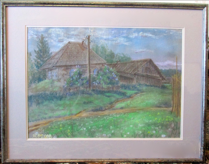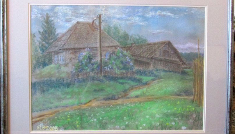 С пожеланиями дальнейших успехов в незаменимой для села деятельности библиотеки, к её столетию я приготовила в подарок рисунок пастелью, который сделала с натуры на Набережной улице.