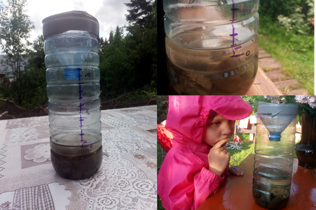 Взрослые смотрят на червей с омерзением, а дети их обожают. Ловят, берут на ладошки, общаются. Давайте устроим эксперимент! Построим им дом и понаблюдаем за их работой. Для этого нам потребуется 2-литровая пластиковая бутылка с обрезанной верхушкой, земля, песок и очистки, черный полиэтиленовый пакет, прищепки. В бутылку насыпайте поочередно влажную землю и песок (2 раза). Ширина слоя должна составлять 5 см. Сверху положите очистки от овощей и фруктов. До края бутылки должно оставаться примерно 5 см. Запустите червей в домик. Накройте бутылку пищевой плёнкой и проделайте в ней отверстия. Закутайте бутылку черным пакетом, зацепите края прищепками. Наблюдайте за происходящим каждые два дня. Черви перемешают всё содержимое бутылки! (Наблюдения автора: через несколько дней черви не утащили очистки в низ бутылки, но были чётко видны лабиринты, т. е. следы.)