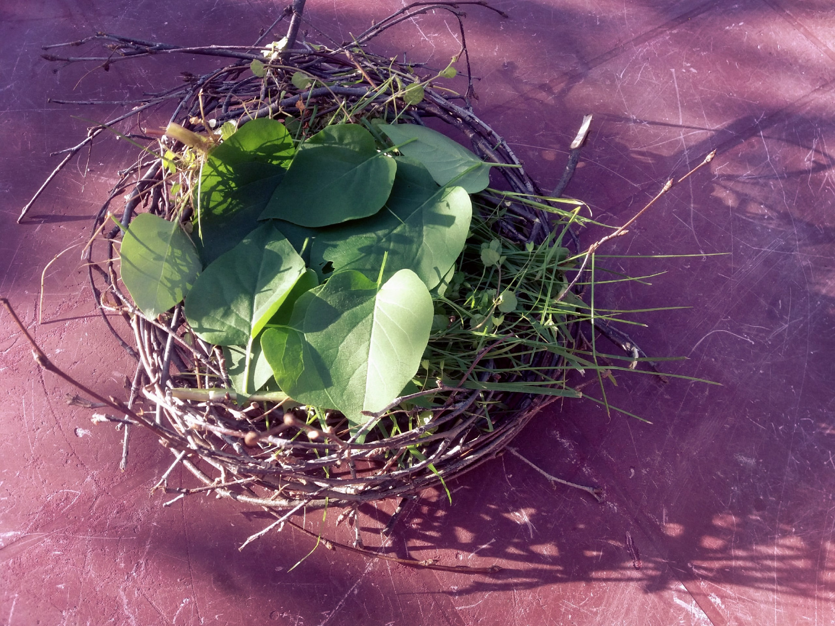 Почувствуйте себя птицами — сплетите гнездо! Найдите шесть гибких прутьев (ивы, березы, черемухи), обрежьте их до длины 40 см. Перекрестите прутья в форме звезды, завяжите их в центре шпагатом, проволокой. Это будет каркас гнезда. Теперь соберите другие прутья потоньше, обвейте ими основу вверх и вниз. Постепенно выгибайте каркас внутрь, чтобы у вас получилось гнездо, а не паутина. Заполните пустоты в стенках гнезда соломой, травинками. После оформления гнезда вспомогательный шпагат можно надрезать и вытащить. Установите гнездо на дереве. Вряд ли в нём кто-то заведётся, зато оно станет отличным декором.