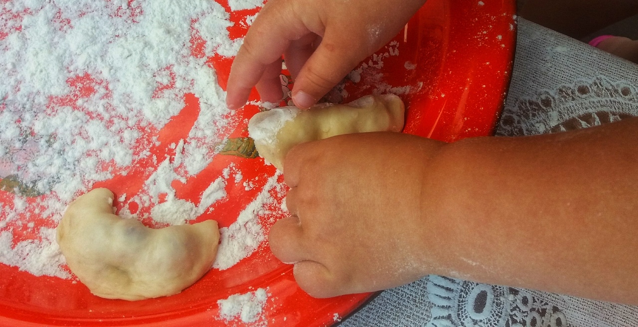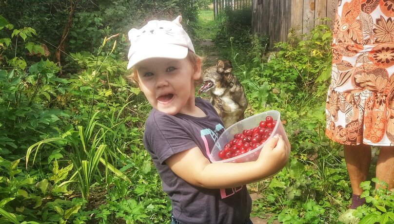 Книга «100 идей» предлагает обустроить во дворе кухню для лепки куличиков из песка и травы. Но в августе на многих дачных участках поспевает вишня, и это круто меняет дело. Есть её с дерева понравится не каждому малышу, особенно после сладчайшей черешни. А вот собрать вишню и приготовить из неё что-то сладкое — вот это другое дело! Мы решили сварить вареники. Бывает, что вишня растет слишком высоко и не в самых доступных для малышей местах, потому детские ручки не лучшие помощники в сборе плодов. Тут придётся обходиться собственными силами. Совсем невозможно поручить детям выковыривать из вишен косточки: от этого занятия интерес к грядущей выпечке совсем теряется, поэтому и тут мы можем положиться только на себя. Зато нет лучших помощников в замесе и раскатывании теста. А вырезание из него кружочков, раскладывание вишен и лепка вареников — так это вообще примерно play-doh! Не факт, что ребёнок потом будет есть то, что получилось, но и не это главное. Примерно с тем же успехом можно жарить пирожки с луком или яблоками, собранными на огороде.