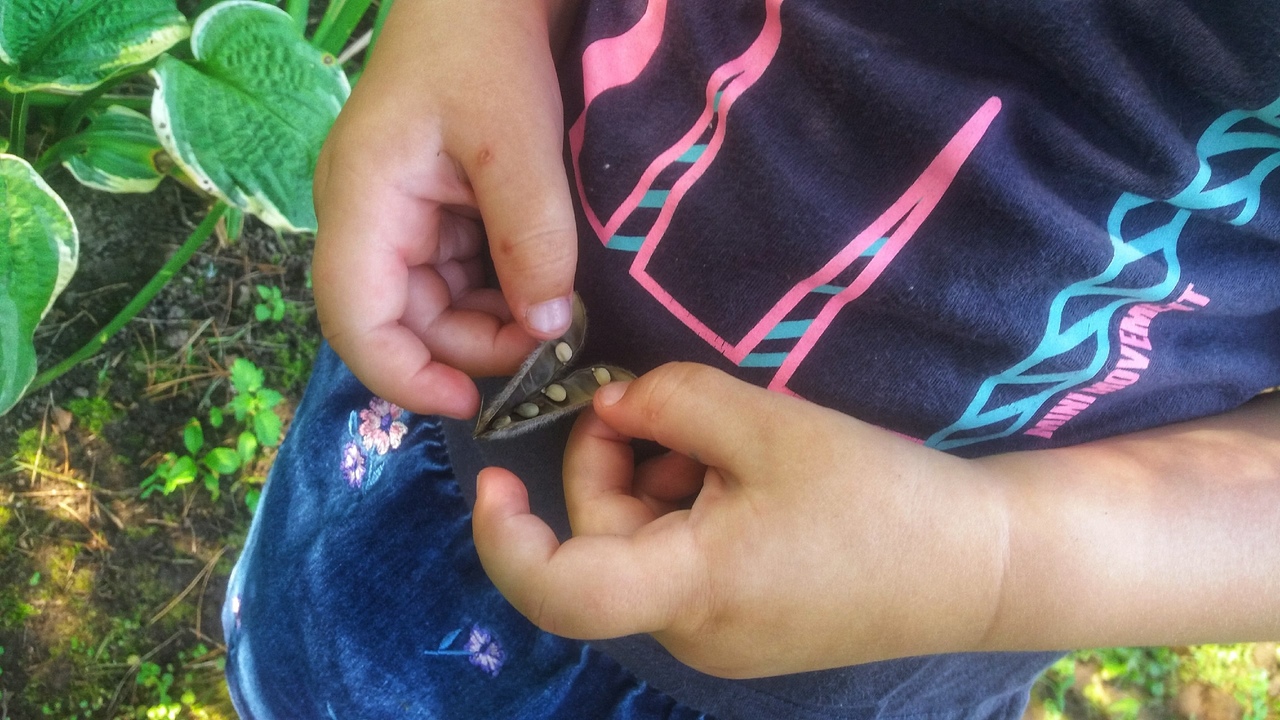 Ближе к осени растения готовятся продлить себе жизнь до следующего сезона. У них созревают так называемые коробочки. Чем они суше, тем выше вероятность, что внутри есть готовые к самопосеву семена. Однако мы не призываем собирать семена по всем правилам: они очень строгие и, потому, превращают интереснейшую исследовательскую работу в скучное и муторное занятие, а мы здесь не для этого. Пройдитесь по вашему саду и присмотритесь, нет ли на растениях таких коробочек. Обычно они появляются спустя две недели после окончания цветения. Мы обнаружили такие на люпине, васильках, хосте. Позвольте малышу сорвать коробочку, размять её пальчиками и обнаружить маленькие тёмные зёрнышки. Также можно исследовать растущие на засеянных полях овёс, рожь. Может, в них уже зародись зёрнышки?