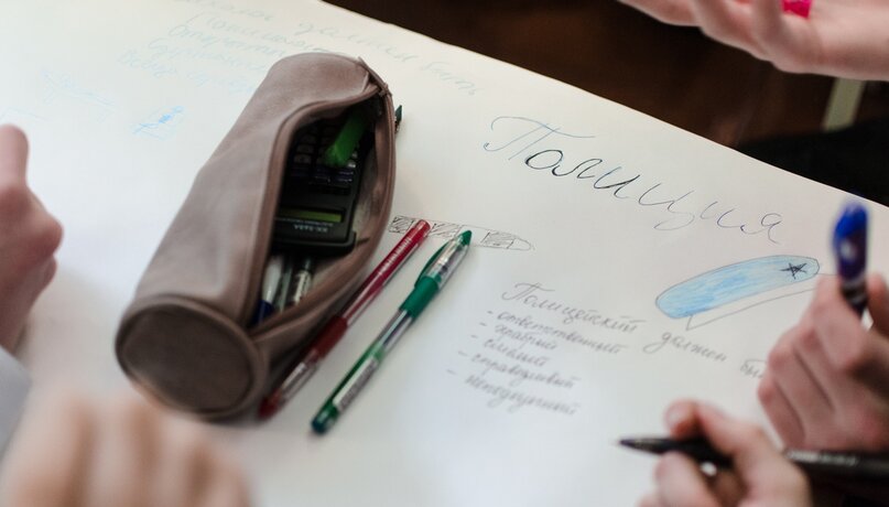 После презентации профессий ребят ждало творческое задание. Каждая команда получила чистый лист ватмана, а уже через пятнадцать минут делилась с залом своими ассоциациями о каждой профессии. Бурное обсуждение и увлечённость процессом зарядили зал отличным настроением. Школьники сошлись на том, что полицейский должен быть ловким, мужественным, храбрым и сильным духом, врач скорой помощи – добрым и отзывчивым, в любой ситуации оставаться профессионалом, детский психолог – понимающим, мудрым, сдержанным, старающимся помочь.