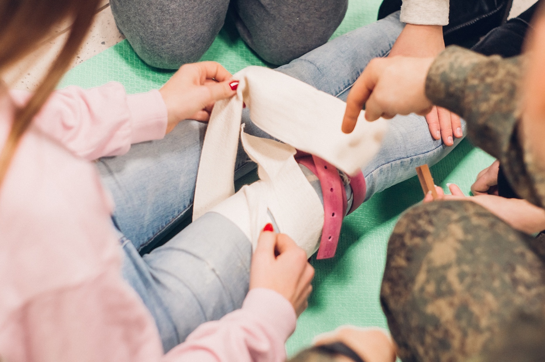 На следующем этапе квеста команды научились оказывать первую медицинскую помощь: проверять пульс, накладывать жгуты, бережно делать перевязки. А закончилось прохождение маршрута победным маршем в исполнении оркестра Пермского кадетского корпуса.