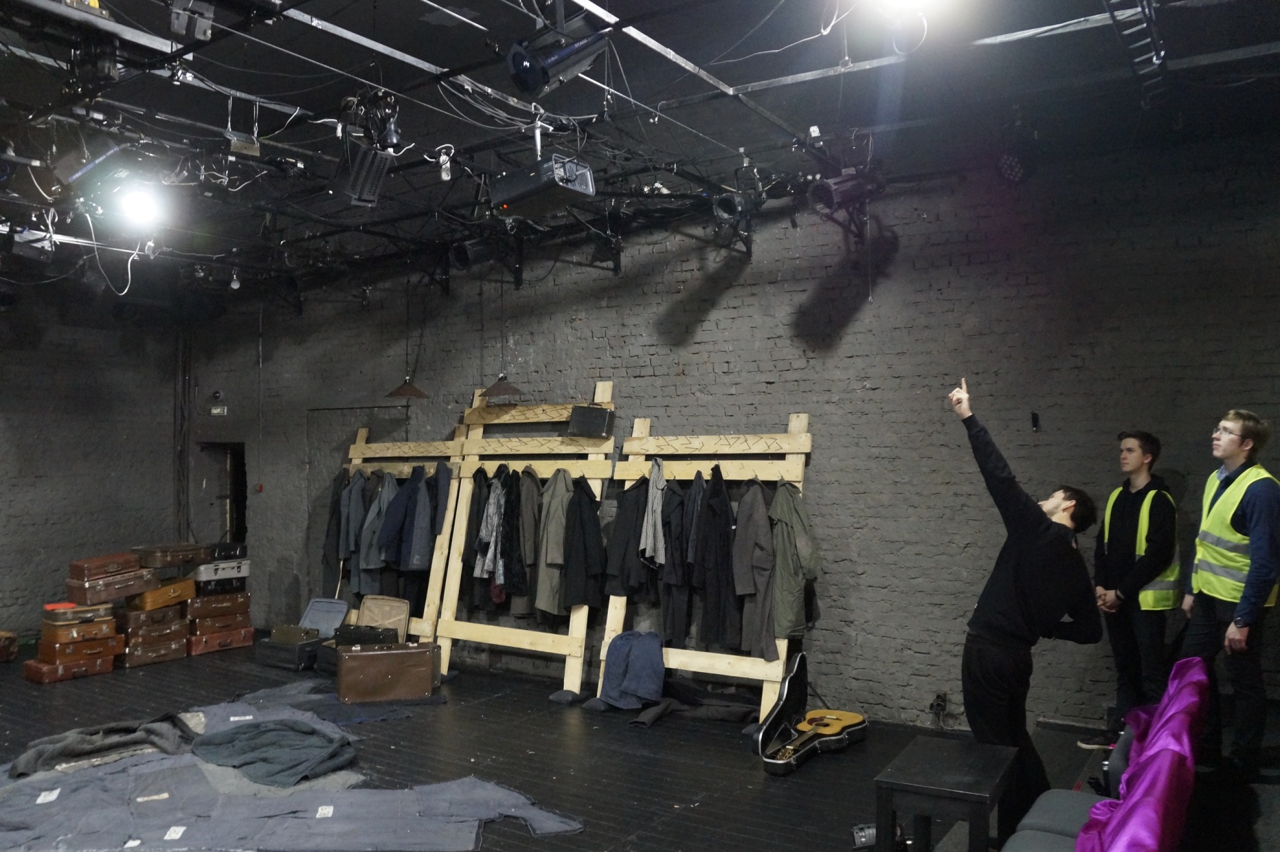 Ну а в завершение экскурсии юнкоры поднялись на 4 этаж театра, почти под самую крышу, где посмотрели сверху на устройство сцены. Здесь находились многочисленные прожекторы и оборудование для смены декораций. Конечно, поражает масштаб, ведь мы стояли на высоте в 21 метр. А где-то внизу ходили люди, начинался саундчек и ставились декорации.