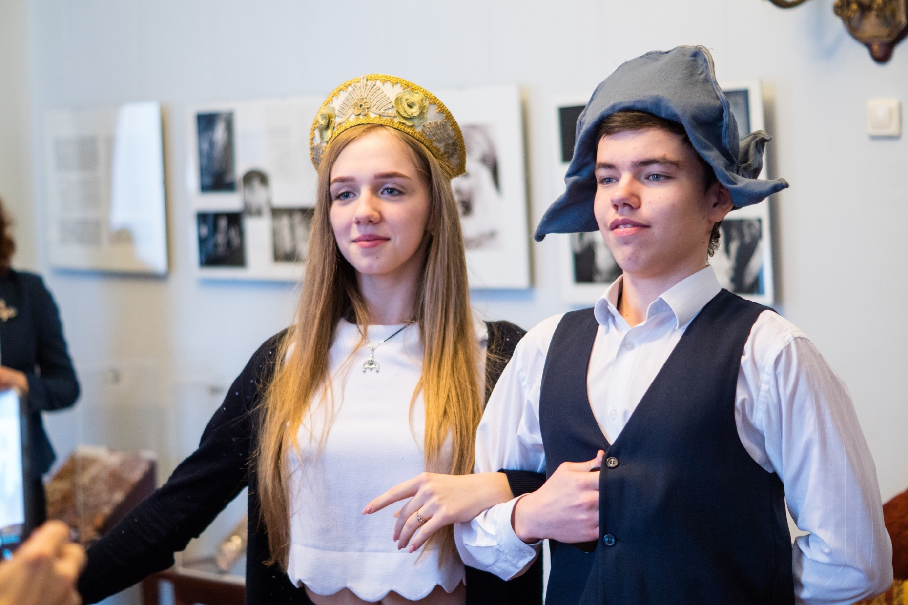 Мы передвигались по старым узким лестницам. В мастерской по изготовлению париков, бород и усов работал мастер. Его образ показался нам сказочным и волшебным. Нам разрешили примерить головные уборы и другие элементы костюмов. Мы мерили, фотографировались и на минутку представляли себя артистами.