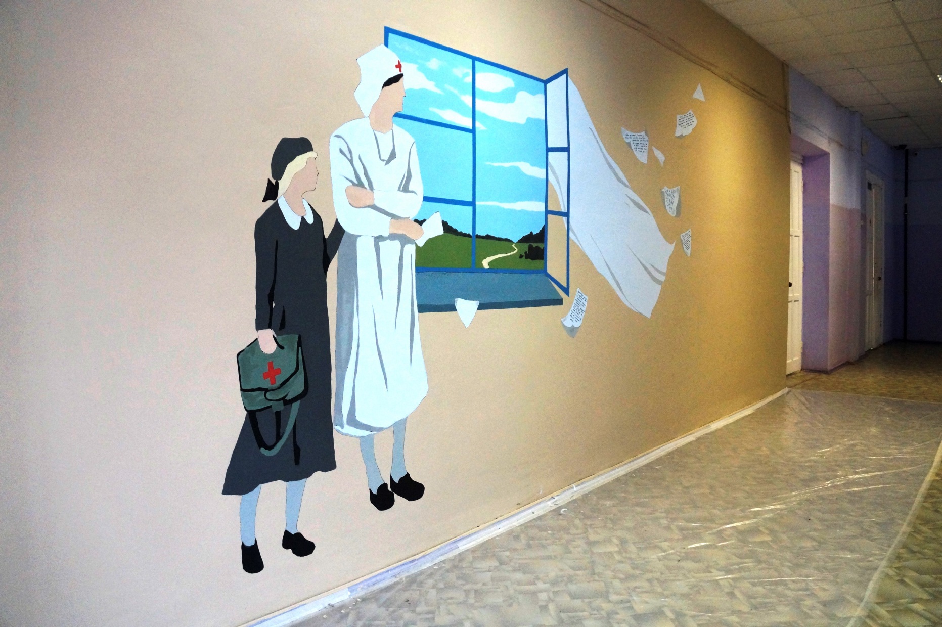 – На панно мы решили изобразить солдата в пилотке, санитарную сумку и повязку с красным крестом. За основу взяли реальные письма, которые сохранились в архиве нашей школы. Это письма солдат, работников эвакогоспиталя, детей и учителей. В ноябре мы активно работали с архивом, а в декабре уже наносили на стену рисунок. В разработке концепции рисунка нам очень помогли дизайнеры. Ребята выразили свои пожелания, что они хотели бы видеть на стене, а дизайнеры помогли воплотить их идеи в жизнь.