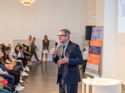 14 сентября в рамках открытия Третьего профориентационного фестиваля «Пермь профессиональная» состоялась пресс-конференция «Профразведка. Политех-экспедиция» с первым проректором ПНИПУ Николаем Алексеевичем Шевелёвым. У ребят из 11 школ Перми и Пермского района была возможность задать вопросы об учёбе в университете, а также узнать о том, как выпускнику с техническим образованием достичь успеха в жизни.