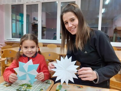 Так, в рамках программы развития ДОУ «Литерус», целью которой является речевое развитие воспитанников и приобщение к «чтению», для малышей были организованы совместные чтения сказки «Теремок». Дети познакомились с сюжетом, выполнили творческие задания вместе с мамами и папами, а потом родители разыграли для ребят эту сказку. В рамках этого же проекта мам и пап ребят постарше обучили мнемотехнике: специальным приемам для работы с ребёнком, которые помогают развивать визуальную память и воображение.