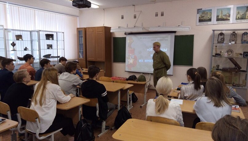 Анна Куровицкая: Урок был посвящен Великой Отечественной войне и людям, участвовавшим в ней. Мы посмотрели разные виды гранат и касок, которые использовались в то время. Я считаю, что такие уроки должны проводиться, чтобы люди не забывали героев нашей страны.