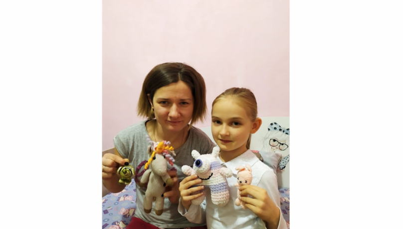 Другая рукодельница Екатерина Завьялова переняла у своей мамы умение шить, но затем увлеклась вязанием. Первыми вязаными изделиями были игрушки: милые зайчики, щеночки, котики. Сейчас многое подвластно умелым рукам мастерицы, она вяжет и одежду, и сумочки, и пледы… Всего не перечислить! Екатерина Владимировна научила своему ремеслу и восьмилетнюю дочь Полину!