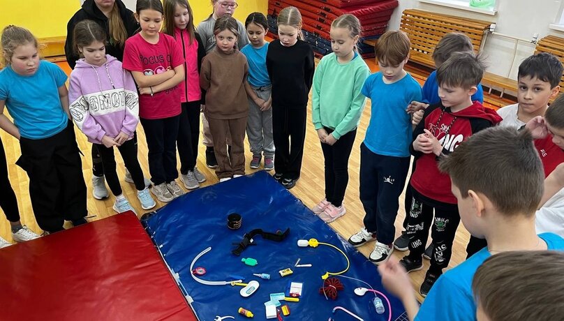 В рамках ОФП класс должен был пройти два испытания. Первое – пробежать препятствия, а потом передать мяч снизу и сверху. Второе – ребята должны дуть в спичечный коробок, чтобы он пересёк черту. Также классы искали мины в снегу на время при помощи палок, метали прототипы гранаты, проходили полосу препятствий и разматывали пожарный шланг на скорость!