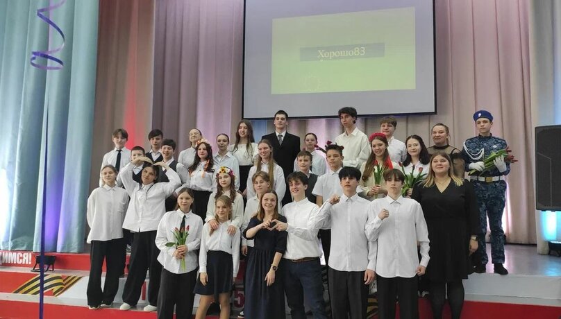 В середине праздника Юнармейцы в сопровождении Василия Михайловича Степанова – учителя физкультуры и командира школьного юнармейского клуба «Азимут» – и наших выступающих ребят вручили цветы учителям и сотрудникам школы. Яркие весенние букеты стали символом благодарности и любви, а улыбки на лицах женщин были знаком счастья и радости. Кульминацией мероприятия стало совместное исполнение песни.