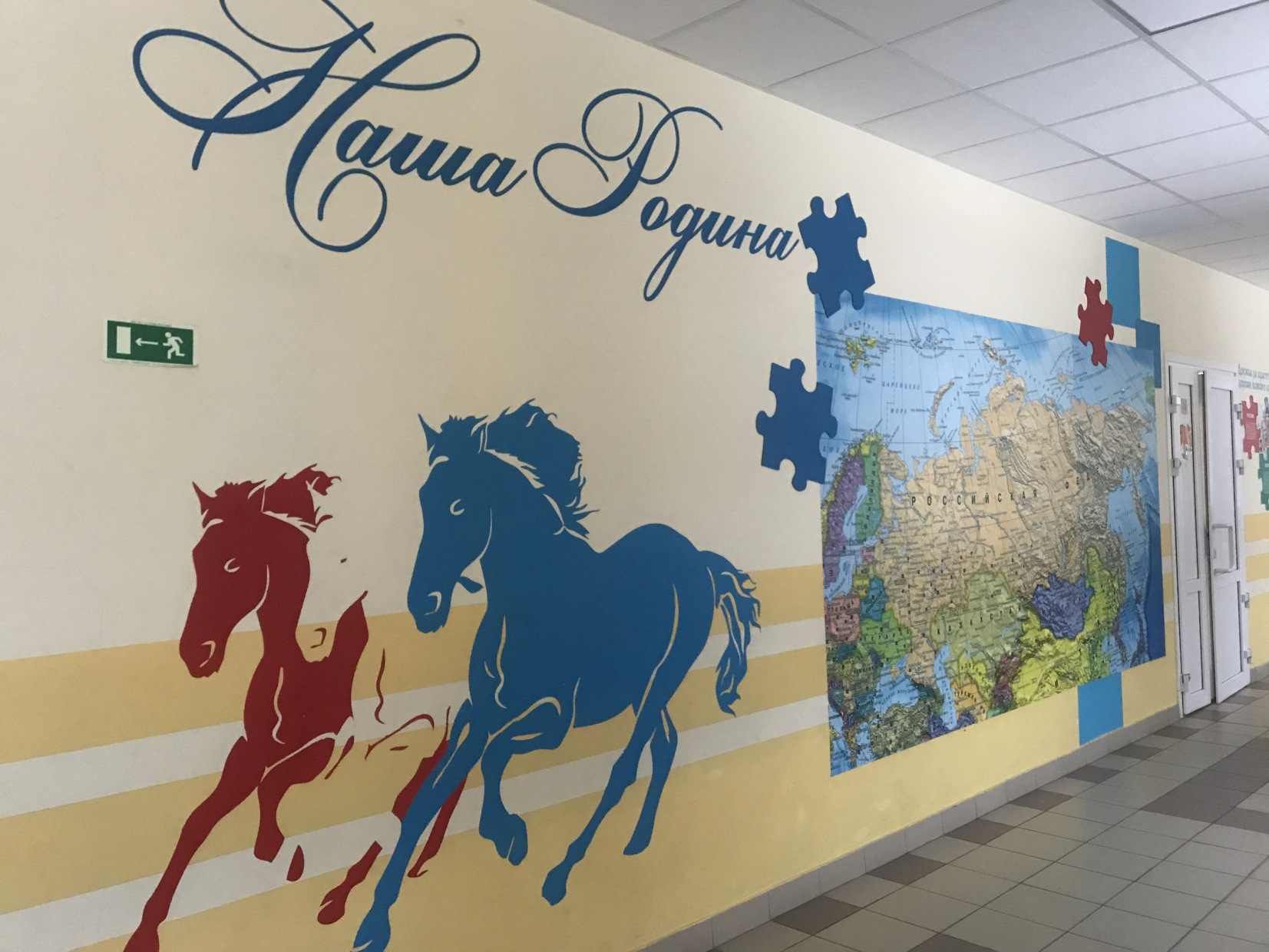 Рядом с русской тройкой большая карта мира показывает масштабы нашего государства. Затем огромный пазл «Народы России» наглядно демонстрирует: мы едины и важны друг для друга. О традициях разных национальностей ребята рассказывают и на ежегодном школьном фестивале народов России, для него же вместе с родителями шьют костюмы.