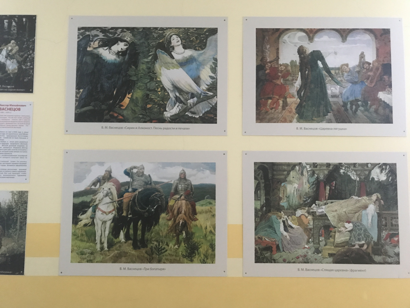 Противоположную сторону коридора украшает русская живопись. Мысль разместить репродукции картин Шишкина, Васнецова, Репина, Айвазовского появилась у директора Ирины Павловны Синицы, когда она гуляла вместе с внуком сначала в Русском музее, а потом в Третьяковке. Она вспоминает: «Я тогда подумала: кто моих детей сюда повезёт? И решила у себя представить крупных мастеров, которые были бы понятны и интересны ребятам». Ирина Павловна любит останавливаться в этой части школы у картины «Неизвестная» Ивана Крамского и говорить девочкам, что именно так должна смотреть и выглядеть женщина, или спрашивать мальчишек, корабельная ли сосна нарисована у Ивана Шишкина.